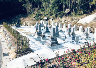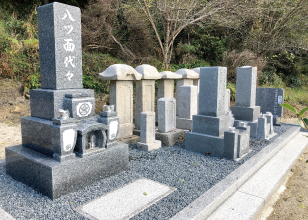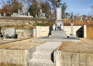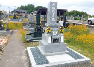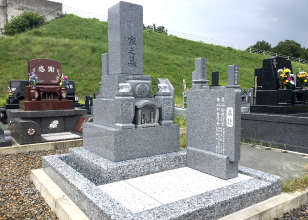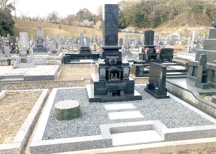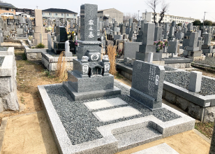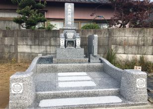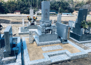 地元の石が良いという希望で鍋田石を使い、メンテナンスに手がかからないお墓が良いということで、前面にはコンクリートを敷いて草が生えないようにしました。 お世話に手間がかからず、お参りしやすいお墓が完成しました。 |