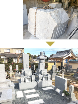 大きな原石を採るのに、時間と手間がかかっています。 全体を国産にこだわった、立派なお墓です。 |