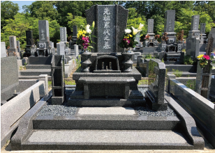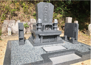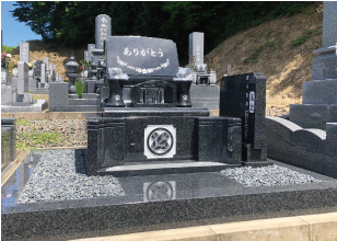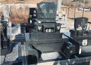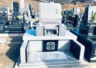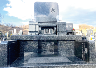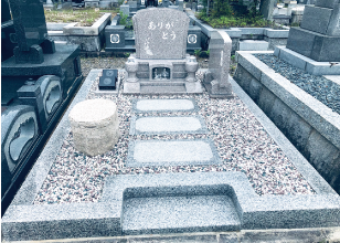 その上で、地元の石を使いたいというご要望があり、お墓の中で元も大切な真ん中の石を地元の銘石である鍋田石を使って建立しました。一部に違う石を使うことでメリハリも生まれ、より洗練された風格のあるお墓になりました。 |