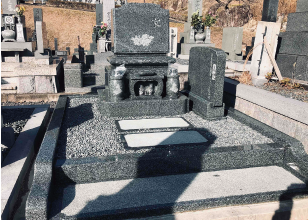 今までのご先祖様のお墓二基と、それぞれのお墓にあったお地蔵様などの移設に加え、今後の子孫のためのお墓を一基新設させていただきました。 お墓周りのブロックや砕石なども弊社で承りました。 |