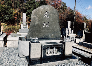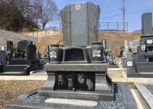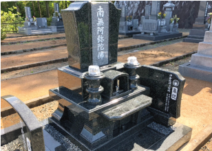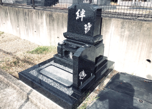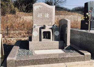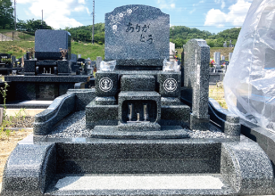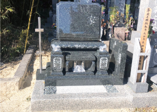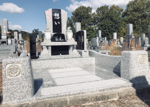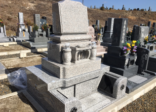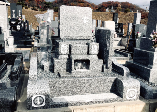ご納得いくまでおそばに置いていただいて、心の整理が付いたらお墓に移すことを考えたら良いのではとお伝えしていたところ、二年ほどして改めて来店され、お墓のご依頼をいただきました。 インドのベルガムグレーという展示場にあった石とデザインを気に入られ、ご希望に沿って建立させていただきました。 |