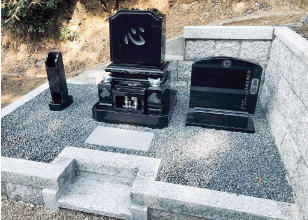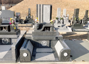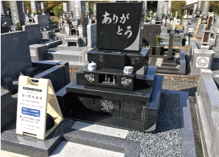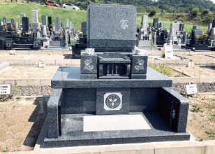 全体的に高さを抑えて、メンテナンスに手がかからないお墓を希望され、今回のデザインと、防草土を使った雑草が生えにくいお墓をご提案させていただきました。ご夫婦ともにお車を運転されないため、将来どちらかがお墓に入っても足しげく通うことが出来ないので、残された方に出来るだけ負担を掛けないようにとのご配慮です。 |