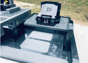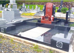 ラメの入った石質が特徴的で、印象に残る個性的なお墓が完成しました。 |