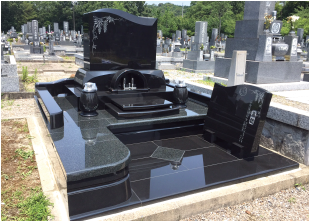 施主様はお墓本体はもちろん、台座から外柵まで全て絵で描いて来てくださり、そのご希望を叶えるべく、図面へと落とし込み建立させていただきました。 インドの黒みかげは漆黒で艶のある美しい石で、アーバングレーとのコントラストが独特の雰囲気を生んでいます。 シンプルで滑らかなデザインと相まって、未来的な雰囲気のあるお墓に仕上がりました。 |