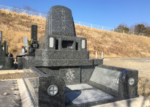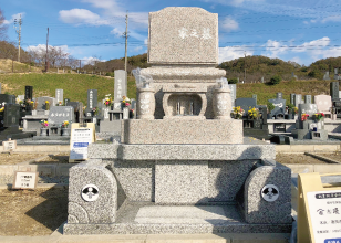 施主様は、ご親族様のお墓が古瀬間にあり、お参りの度に当店でお花を買ってくださるお客様として長年お付き合いさせていただいておりました。そのご縁で今回こうしたお墓を作ることが出来るかというご相談をいただき、名古屋の墓所に建立させていただきました。石は中国のグレーみかげという石種です。 |