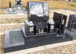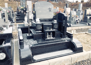 デザインは、施主様が展示場をご覧になって気に入ったものを採用。全ての石を同じ石で揃えたことで、模様の美しい深山吹雪の特徴がより引き出され、印象的なお墓になりました。 |